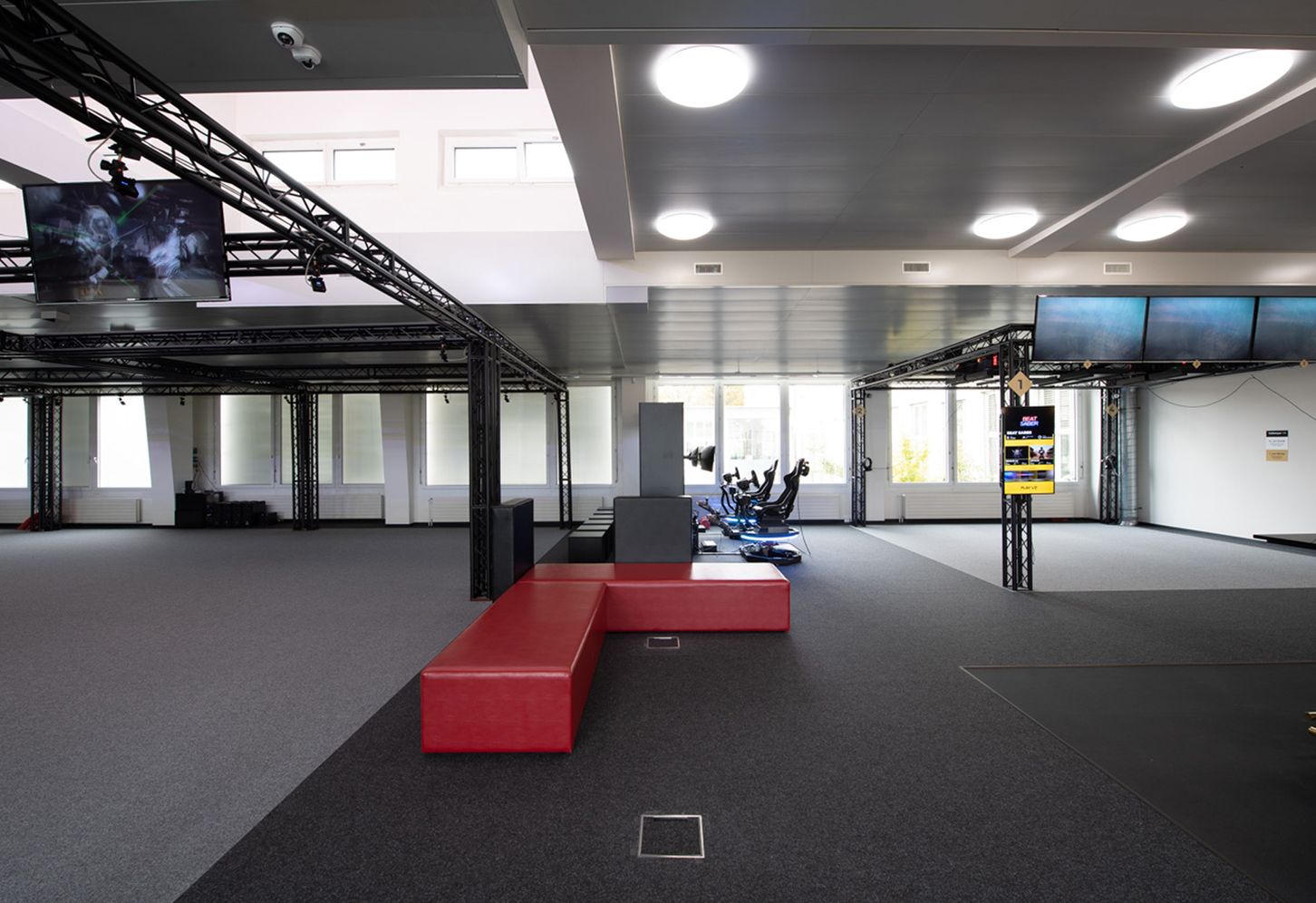 Bis zu 8 Spieler gleichzeitig auf 130 m² mit Zuschauerbereich.